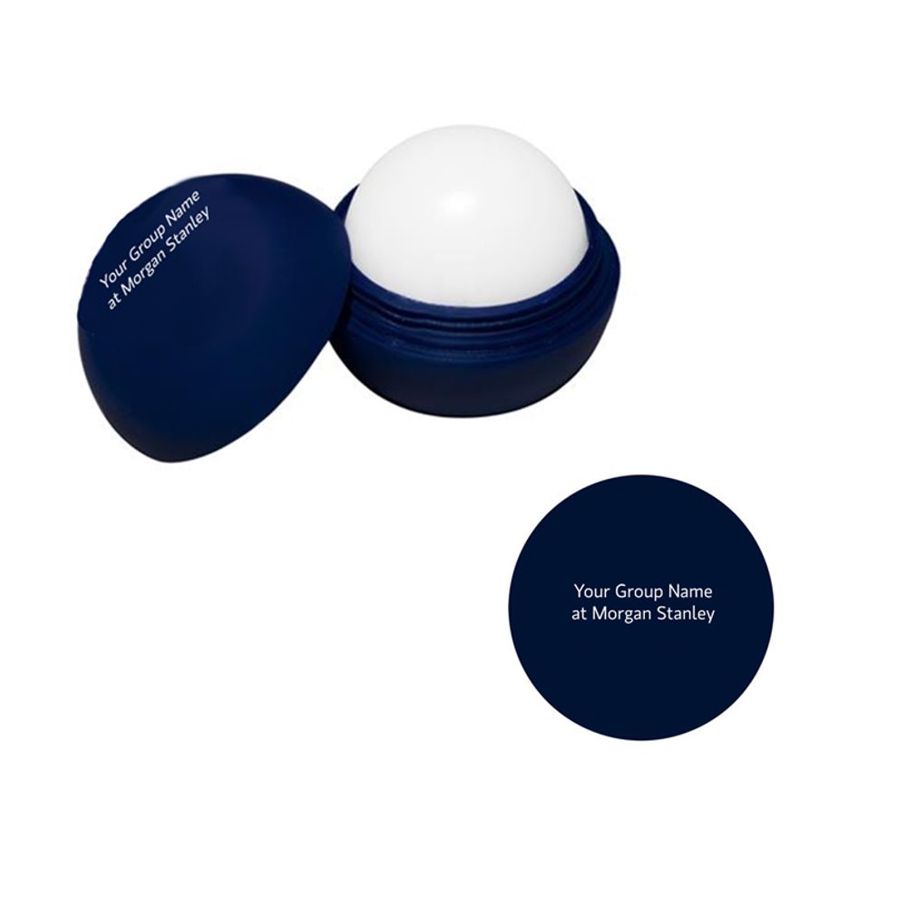 Lip Balm with a unique round shape and matte finish. Vanilla scented lip balm. Features your logo printed on the front.