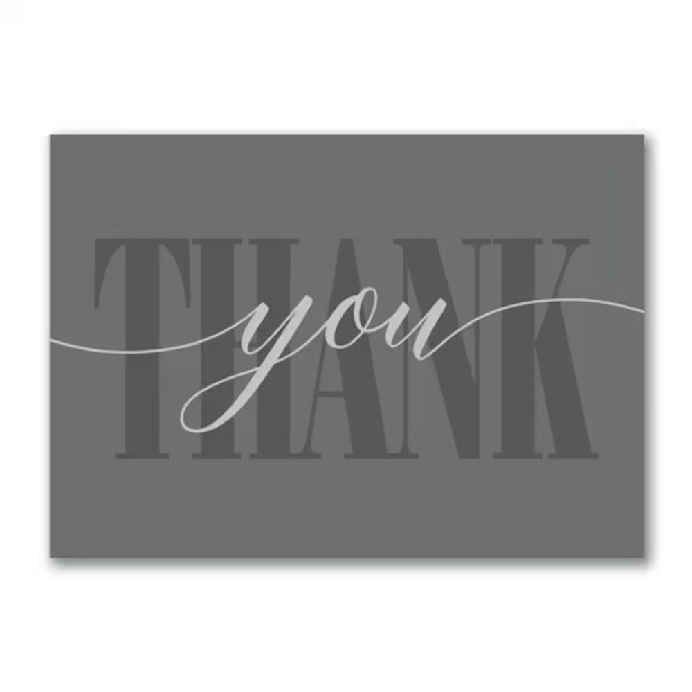A minimalist typography design uses three shades of grey to offer a dignified way to say thank you. Made from recycled paper by manufacturers using renewable energy sources. Dimensions: 7 7/8" x 5 5/8" Folded. Price Includes: Printed card with choice of blank envelope (white). Paper: White Smooth 120 lb. Features the Morgan Stanley logo inside the card.
