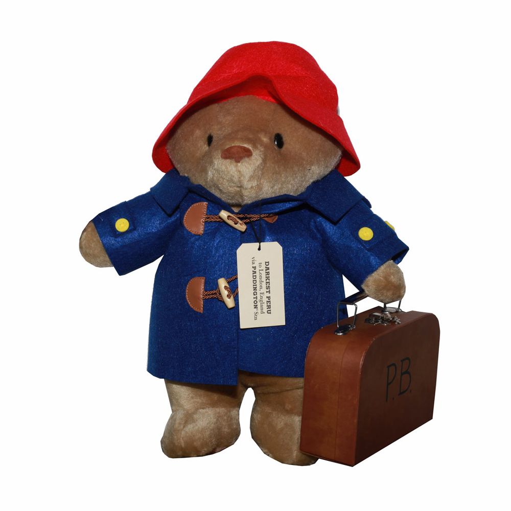 With an embroidered smile, soft-flocked nose, sparkling eyes, and a pleasingly plump belly, this honey of a bear is sized to love. A sturdy paperboard suitcase illustrated with original full-color artwork accompanies this Paddington. Open the suitcase to discover jars of marmalade and a spare sandwich printed inside. Dressed in his famous floppy bush hat and dapper blue duffle coat (with working wooden toggle buttons), this award-winning Paddington Bear always feels at home.