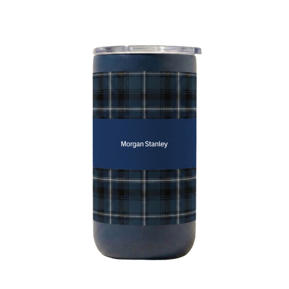 Created with 18/8 stainless steel, a double-walled design, and vacuum insulation to keep your hot drinks hot and your cold drinks cold. 3 hours hot. 8 hours cold. Powder coated finish. Packaged in a premium gift box. Features your logo and the exclusive Morgan Stanley tartan pattern on the tumbler.