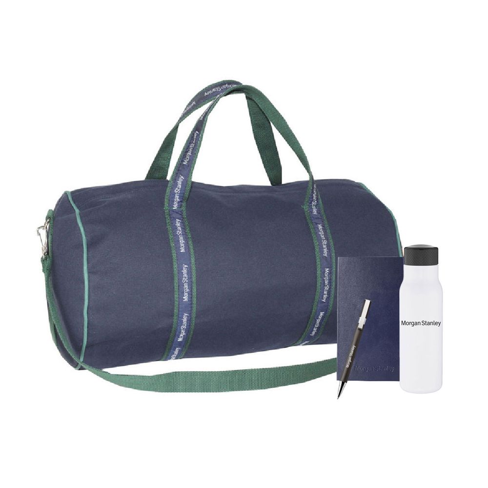 The perfect kit for working from home. Kit includes Moleskine Large Ruled Journal (MS89), Push-Action Ballpoint Pen (MS88243), Stainless Steel Bottle - 25oz (MS88244). Comes packaged in a 21" Original Duffle (MS753).